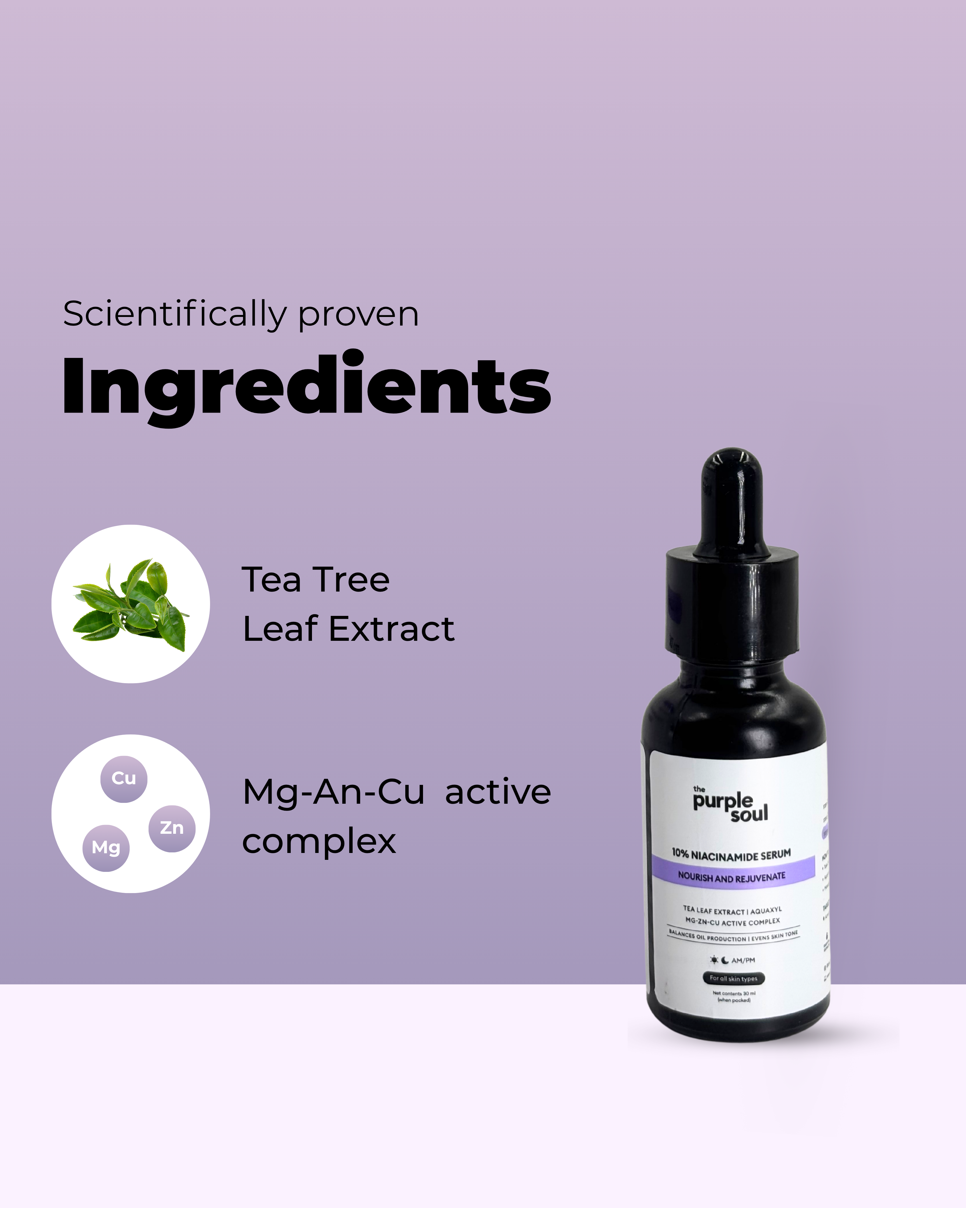 Formulated with 10% Niacinamide (Vitamin B3), enriched by botanical Tea Leaf Extract, moisture-boosting Aquaxyl, and a powerful Magnesium-Zinc-Copper active complex. Skin’s daily dose of clarity and balance